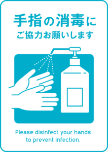 ご入店時の際等はこまめな手指の消毒をお願いいたします。